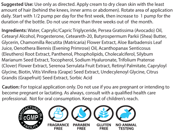 The information above is provided by the product manufacturer. It is recommended to consult with your physician before starting any new dietary supplement or skin cream. Discontinue use immediately if you experience any adverse effects and contact your physician for additional guidance.