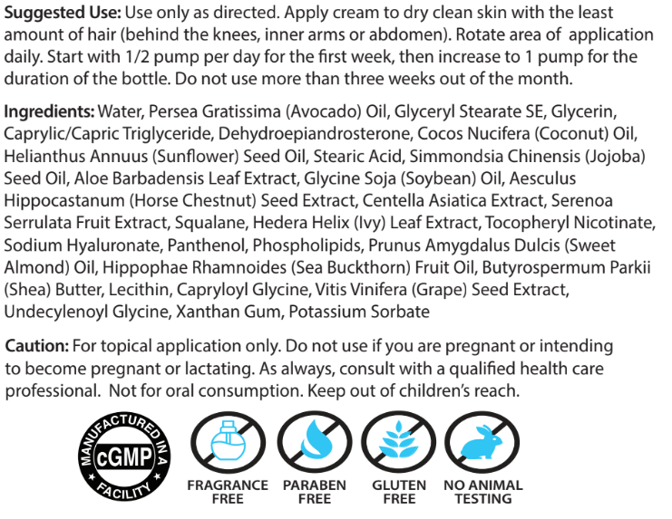 The information above is provided by the product manufacturer. It is recommended to consult with your physician before starting any new dietary supplement or skin cream. Discontinue use immediately if you experience any adverse effects and contact your physician for additional guidance.
